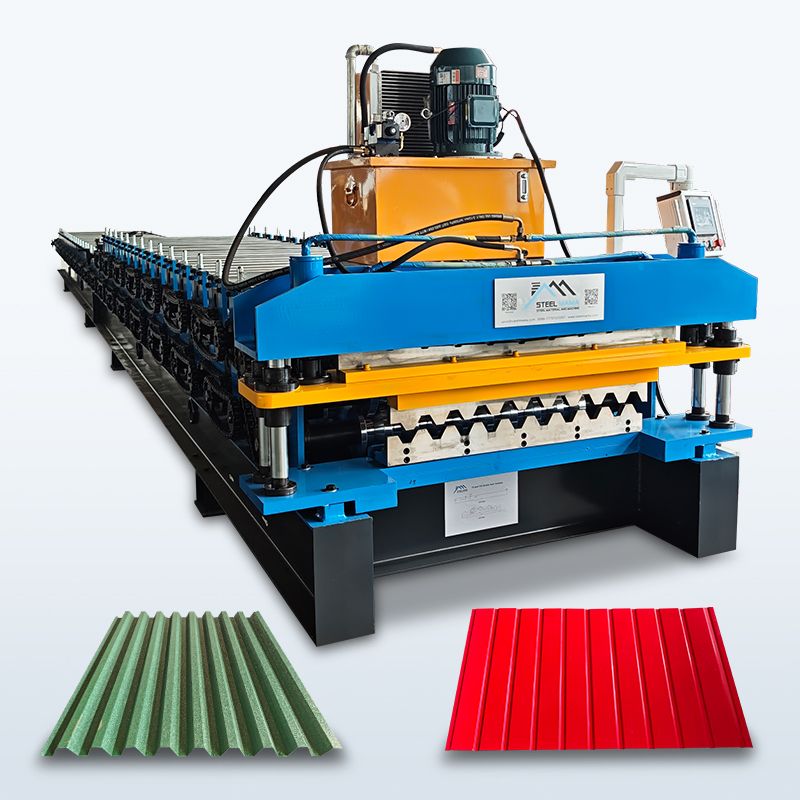STEELMAMA designs and builds customized trapezoidal sheet roll forming machines. For instance, some customers ask for metal roofing sheet roll forming machine, some customers may prefer a separate forming stands structure trapezoidal sheet roll forming machine, or some customers may need safety guard on the roll forming machine body etc.